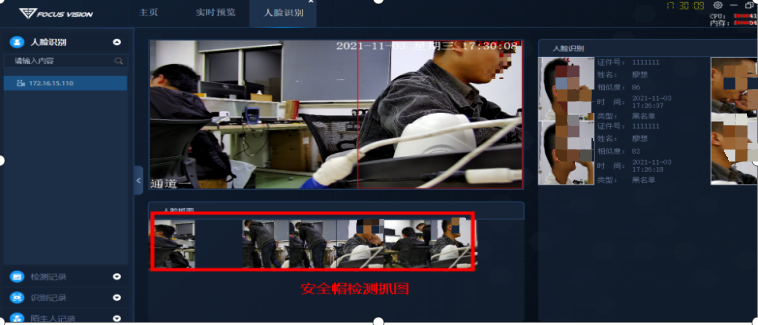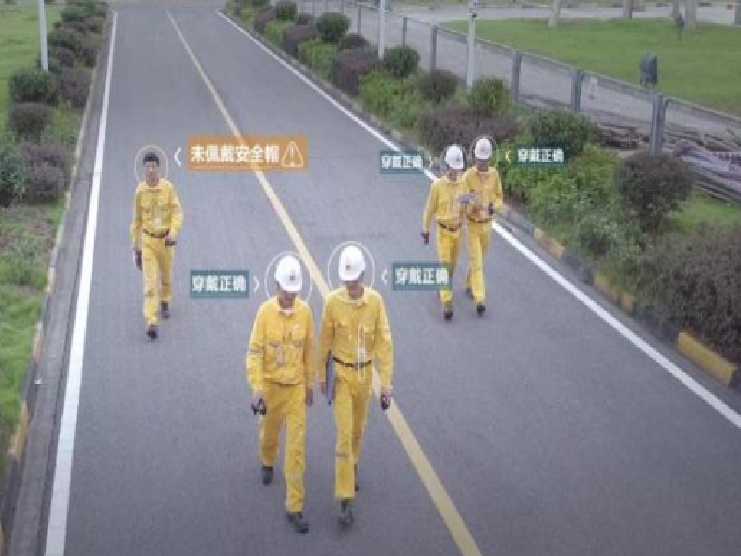 畫面內人員安全帽佩戴狀態可實時刷新,避免人員進入工地后不規范佩戴安全帽現象的發生。