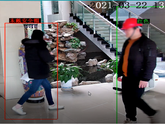 安全帽佩戴情況由底層畫框疊加至視頻流,方便平臺監控。