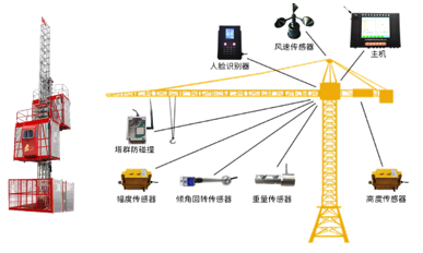 通過安裝安全檢測儀于升降機、塔機內,實時協助識別載重、駕駛員身份、實時高度及運行速度、駕駛室門鎖狀態、傾斜度,并實現實時內部抓拍,及時通過GPRS實時數據上傳至遠程監控中心,實現遠程監管、超限自動報警、塔群碰撞監控等多種功能。