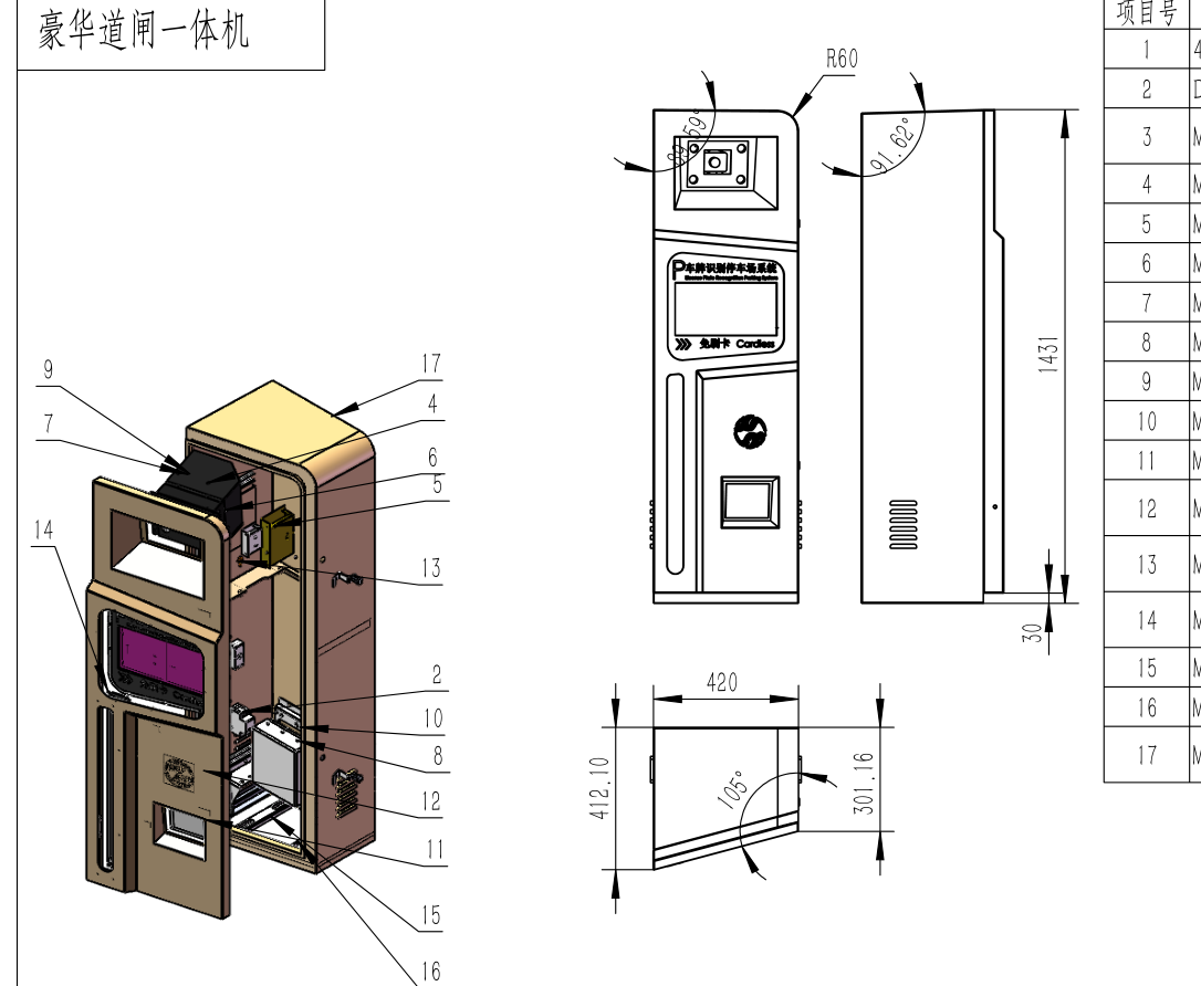 1)、外型尺寸機身高、寬、厚:1420mm*430mm*420mm